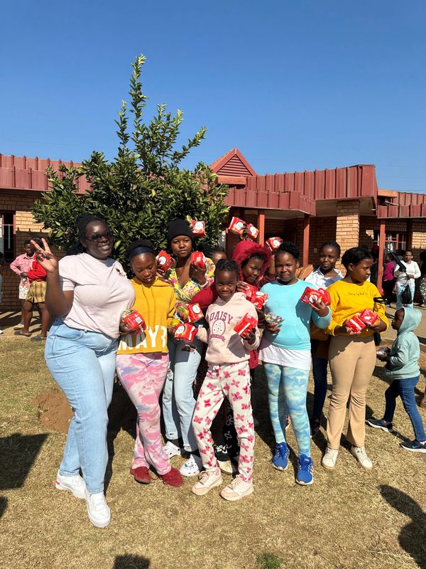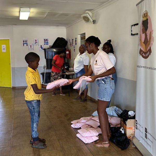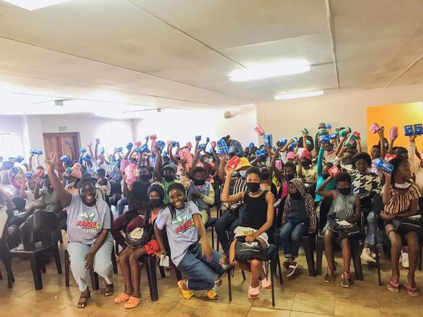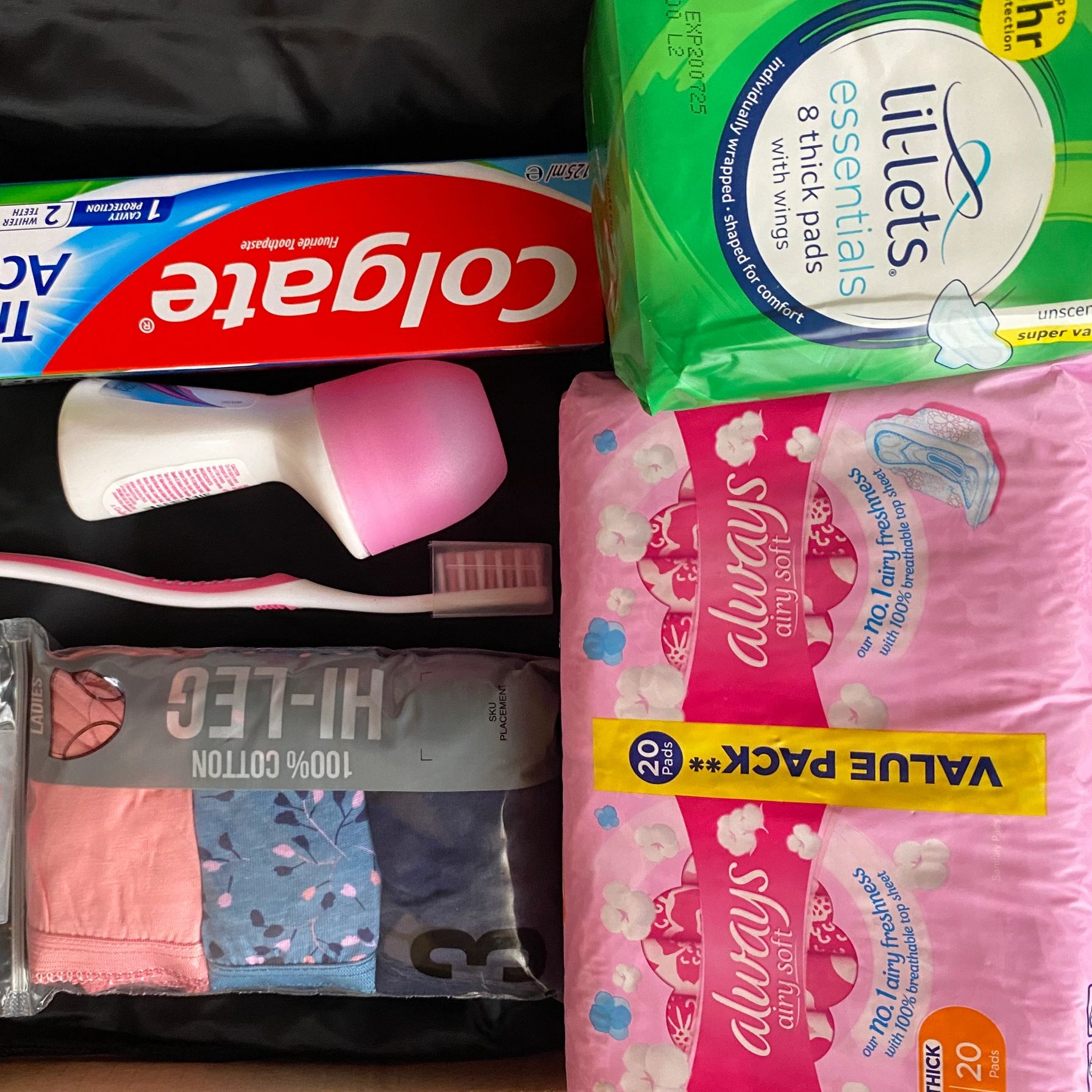 Each month our organisation runs a Pad-Drive. We visit different organisations that we have partnered with and bring together girls from disadvantaged backgrounds who cannot afford to buy period products and we provide them with a dignity bag (see next picture) .