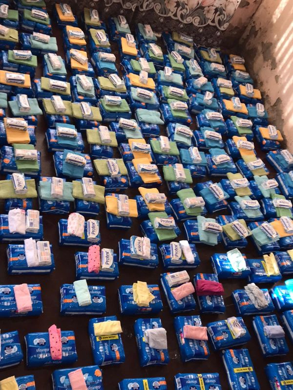 We prepare over 500 dignity bags every month. Our normal dignity bag includes two packs of sanitary pads, bath soap and deodorant. While our seasonal pack may include a full pack of underwear and essential stationary.